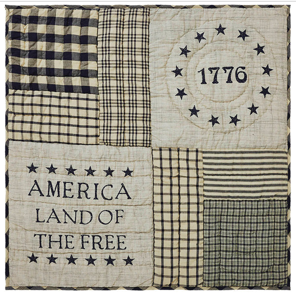 - The America Quilted Throw boasts a classic quilted pattern with detailed stitching. measuring 32"x32". making it perfect for decorative accenting or as a cozy lap blanket.